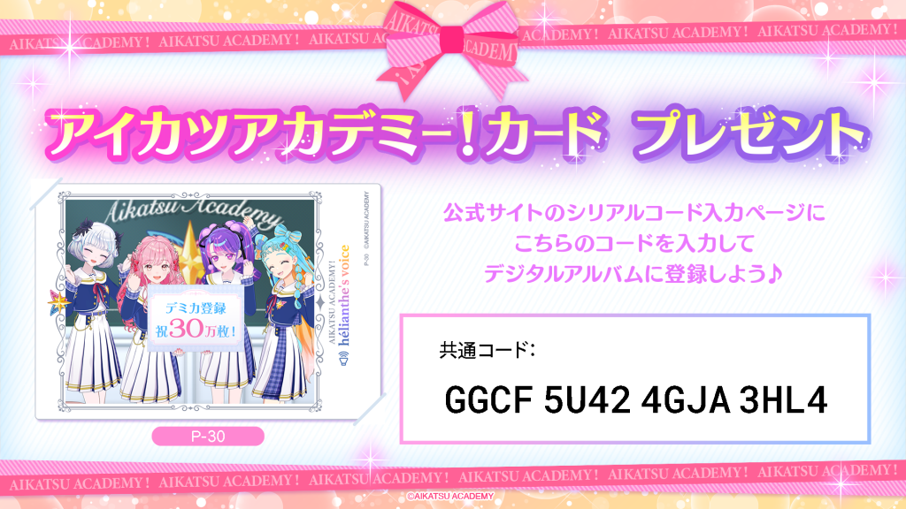 デミカ登録枚数30万枚突破!アイカツアカデミー!カード(P-30)をプレゼント♪